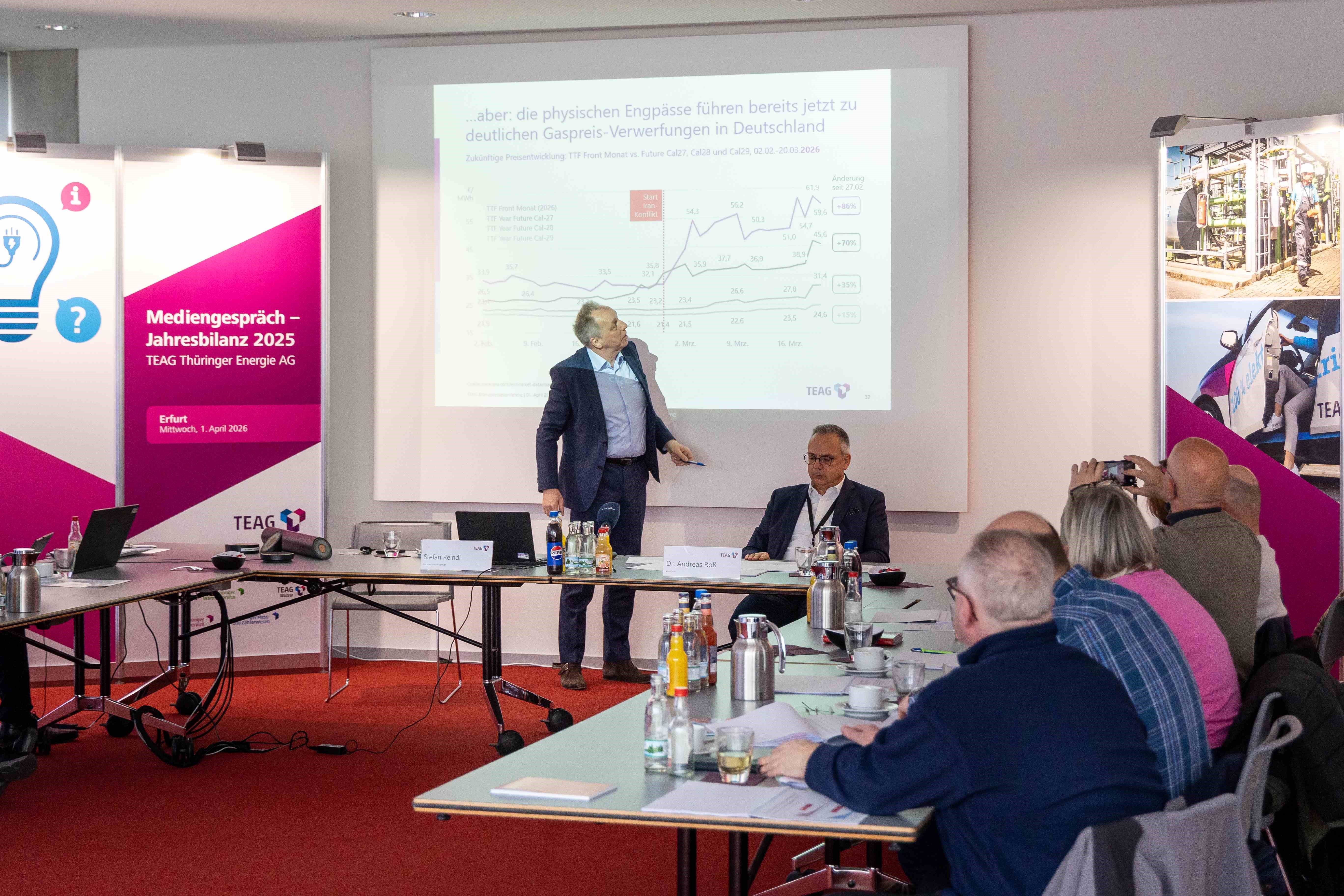 „Das Geschäftsjahr 2025 war für die TEAG-Gruppe geprägt von vielen politischen Unsicherheiten und vor allem dem Warten auf zahlreiche Gesetze im Rahmen der angekündigte Neuausrichtungen der Energiepolitik nach der vorgezogenen Bundestagswahl. Ein Jahr nach dem Ende der Ampel in Berlin ist jedoch kaum ein wichtiges Energiegesetz oder entsprechende Regulierungsreform beschlossen worden. Hier fehlt uns die Planungs- und Rechtssicherheit.  Haushalte und Industrie warten immer noch auf Entlastungen“, erklärte TEAG-Vorstandsvorsitzender Stefan Reindl bei der Vorstellung der TEAG-Bilanz 2025 in Erfurt. „Die Dekarbonisierung der Energiewirtschaft geht ungeachtet dessen voran, die „Elektrifizierung“ wird sich infolge des Irankrieges noch beschleunigen. In diesem unverändert schwierigen Umfeld haben die Mitarbeiterinnen und Mitarbeiter der TEAG erneut in allen Unternehmensbereichen hervorragende Leistungen erbracht“, so Vorstandschef Stefan Reindl weiter.